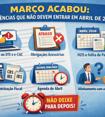 08/04/2026 Nova lei garante até 3 dias de folga para exames preventivos: veja como funciona 06/04/2026 PGFN com descontos em 2026: quando a transação tributária realmente vale a pena para a empresa 06/04/2026 Exclusão do Simples Nacional por débitos: como agir quando chega o Termo de Exclusão 06/04/2026 DET na prática: como empresas podem evitar perda de intimações e notificações trabalhistas 02/04/2026 Carmelitas passa a capturar extratos bancários via Open Finance e facilita a rotina dos clientes 02/04/2026 DTE obrigatório para empresas em 2026: por que ignorar a caixa postal tributária pode sair caro 01/04/2026 Lula sanciona nova lei da licença-paternidade e cria o salário-paternidade no Brasil 01/04/2026 Transparência salarial em 2026: o que empresas com 100 ou mais empregados ainda precisam fazer antes do prazo final 31/03/2026 Março acabou: pendências que a empresa não deve empurrar para abril de 2026 30/03/2026 O que mais gera passivo oculto em pequenas empresas e quase ninguém percebe a tempo